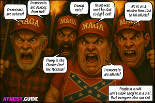 The MAGA cult are crazy religious extremists who mix Trump worship with fascist Christian Nationalism.