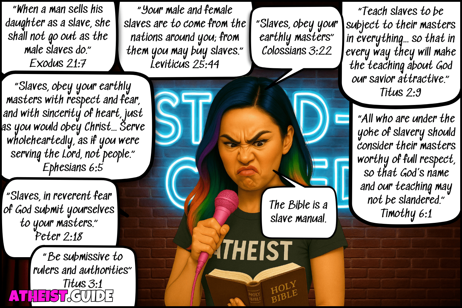 But, wait! It gets worse: God is very pro-slavery. God fucking invented slavery!
