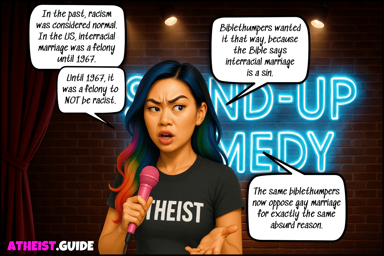 Why was interracial marriage illegal in the US? Because the Bible says don’t you fucking dare to marry someone who doesn’t look like you, or God is gonna fuck you up.