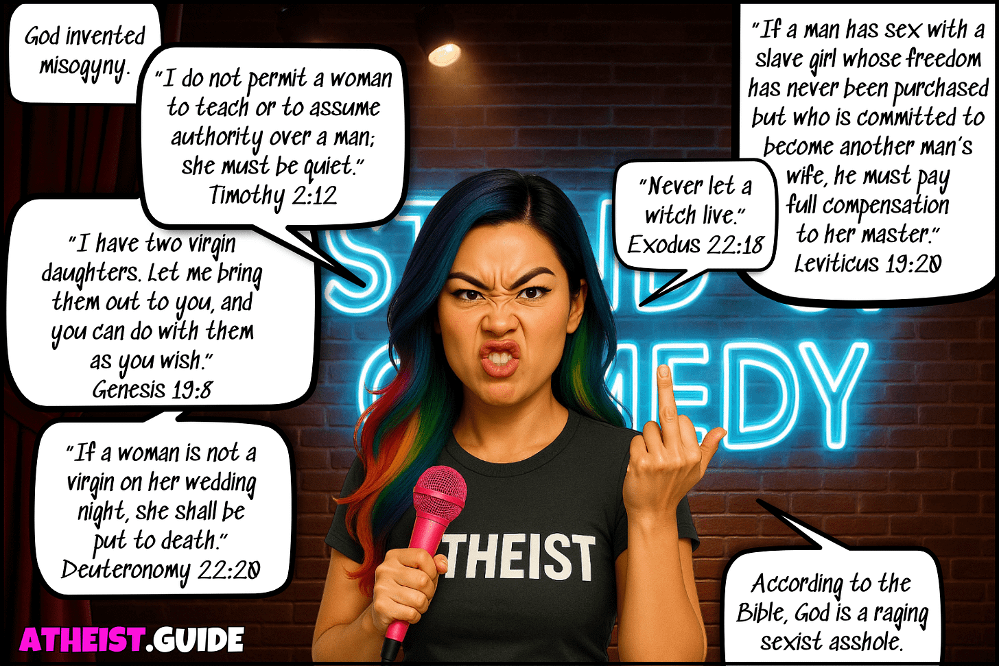 No wonder sexist Republican assholes love to hide their own misogyny behind the Bible. God is the biggest toxic alpha-male of them all. God is the world’s biggest rapist! Even bigger than Trump!
