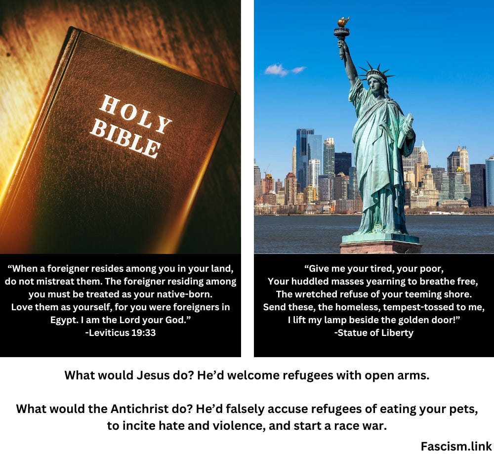 The Orange Antichrist is literally persecuting Christians, while his brainwashed MAGA Nazi cult squeals with delight.
